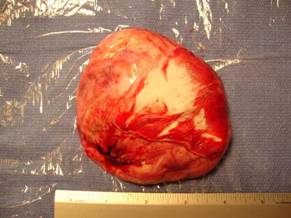 With such a large tumor, some of the excess skin must be removed. On top of the removed tumor is a piece